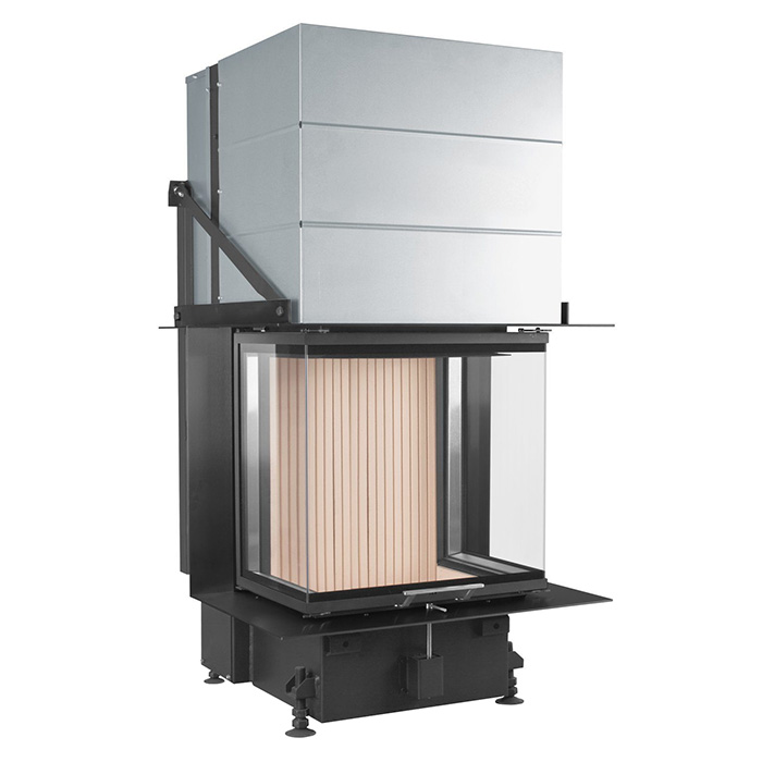 Топка изготовлена из цельного литого чугуна, без стыков и герметиков. Прочность чугуна увеличивает срок службы топки. Дрова закладываются в топку 2-3 раза в сутки. Имеется встроенный шибер. Такая топка обеспечивает теплом дом до 100 квадратных метров за 3-4 часа.