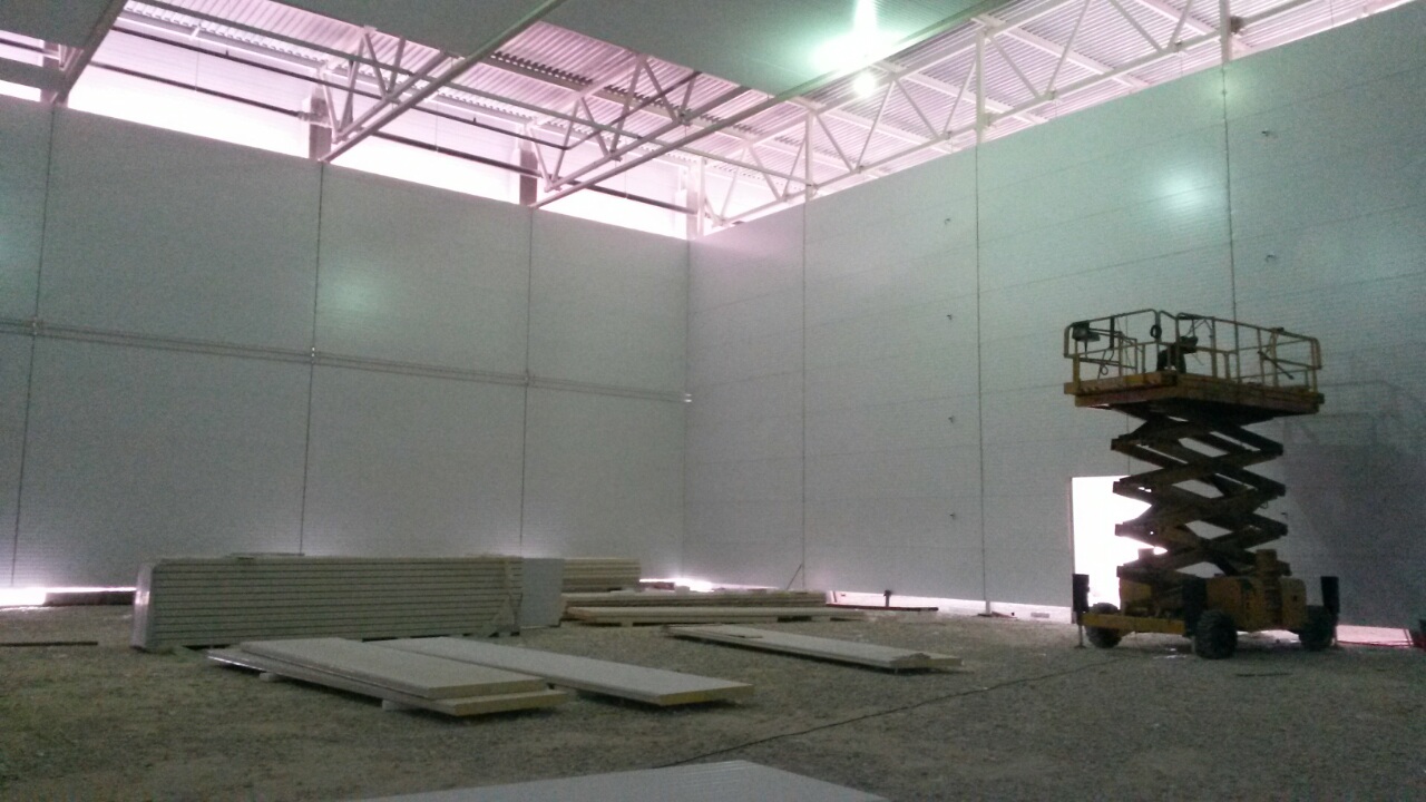 Экономичность. Каркас, обшитый сэндвич-панелями достаточно лёгкий и не нуждается в мощном дорогостоящем основании и затрат на дополнительную отделку.Быстрый монтаж также позволяет сократить расходы на строительство.
