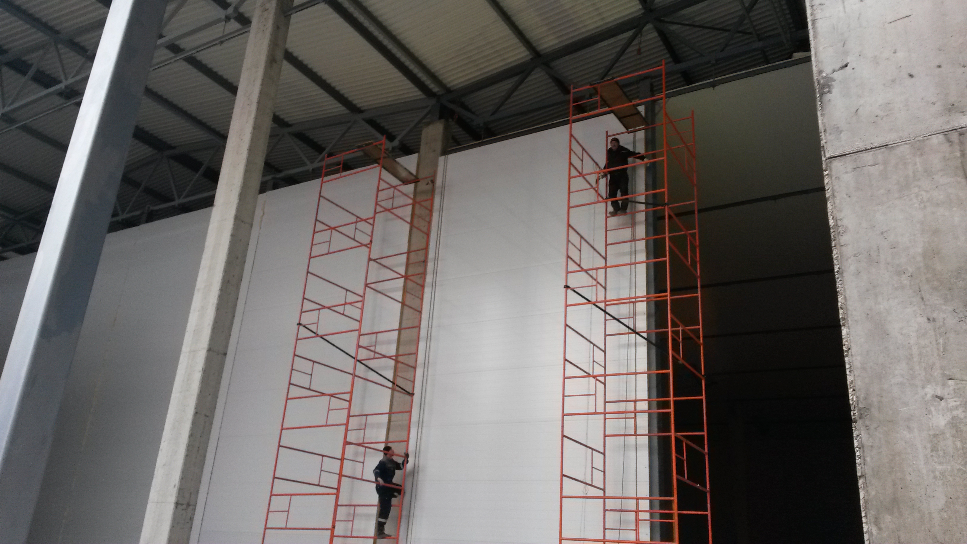 Быстрый монтаж. ТСП мало весят, легко монтируются и не требуют дополнительных работ по утеплению здания. Также ангары из сэндвич-панелей не нуждаются во внутренней и внешней отделке. Здание площадью 1000 кв. м можно построить за 1-2 месяца. При использовании современной подъёмной техники можно справиться за 1 неделю.
