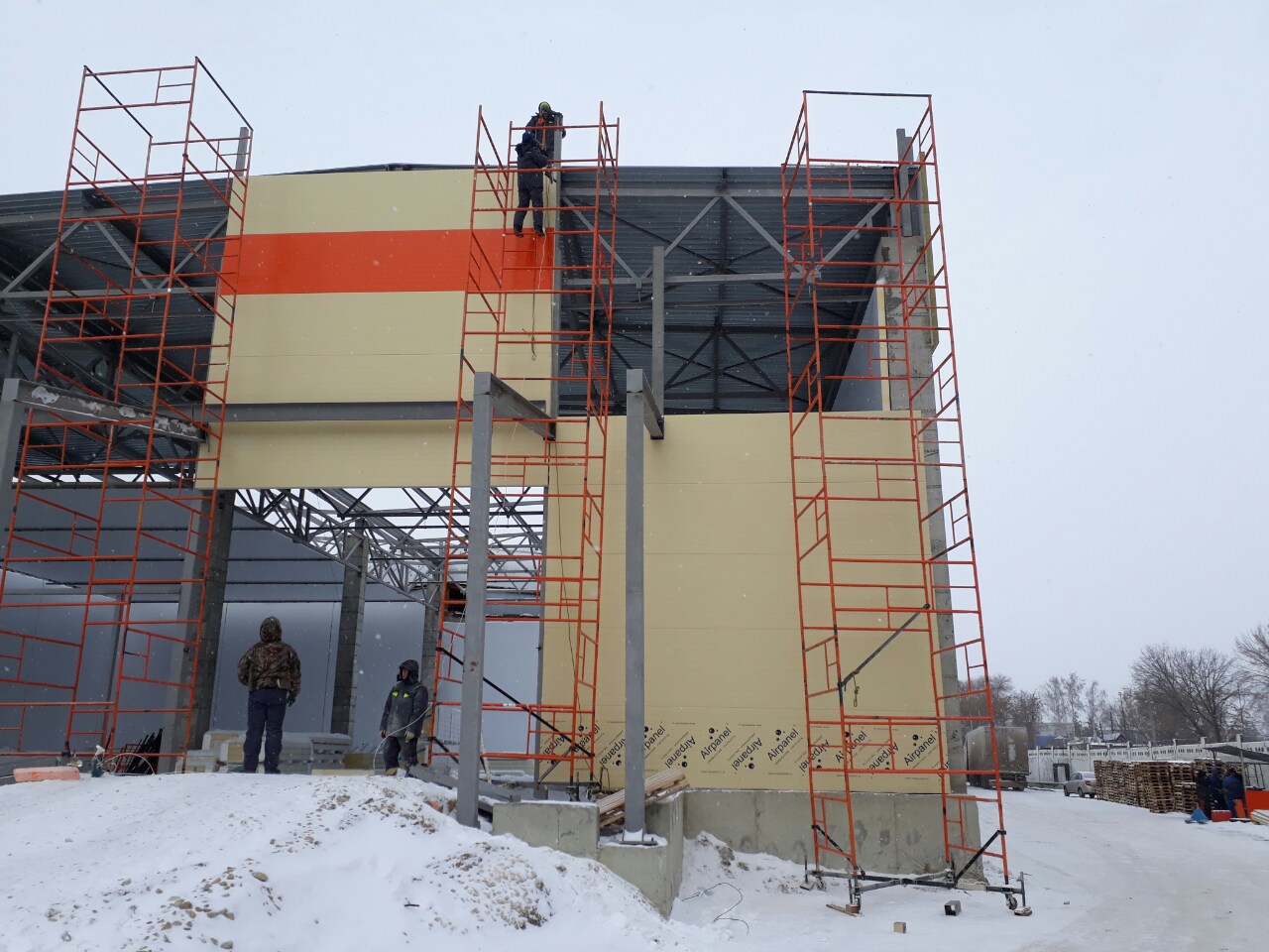 Всесезонный монтаж. Ангары из сэндвич-панелей возводят в любое время года. Это позволяет избежать простоев в строительстве.